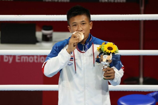 “น้องแต้ว” สุดาพร สีสอนดี นักมวยสากลสาวไทย รุ่นไลต์เวท 60 กก. ขึ้นรับเหรียญทองแดงอย่างเป็นทางการ ในการแข่งขันมวยสากล กีฬาโอลิมปิกเกมส์ โตเกียว 2020 ที่สังเวียนโกกุกิคุง อารีน่า กรุงโตเกียว ประเทศญี่ปุ่น เมื่อวันที่ 8 สิงหาคม โดยเหรียญทองตกเป็นของ เคลลี่ แฮร์ริงตัน จากไอร์แลนด์ผู้ชนะกำปั้นไทยในรอบตัดเชือก ขณะที่เหรียญเงิน เบรทริซ แฟร์ไรร่า จากบราซิล และเหรียญทองแดงร่วม มิร่า พอตโคเน่น จากฟินแลนด์