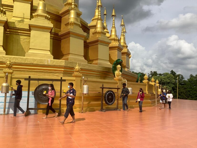 ที่วัดพุทธวนาราม (วัดป่าวังน้ำเย็น) ตำบลเกิ้ง อำเภอเมือง จังหวัดมหาสารคาม นักท่องเที่ยวทั่วทุกสารทิศ ใช้วัดหยุดยาวช่วงวันอาสาฬหบูชา และเข้าพรรษา ต่างพาครอบครัวบุตรหลาน เดินทางมาท่องเที่ยวทำบุญไหว้พระกันอย่างคึกคักตลอดทั้งวัน โดยนักท่องเที่ยวต่างนำดอกไม้ธูปเทียนเวียนเทียนรอบเจดีย์ศรีมหาสารคาม กราบไหว้ขอพรและโชคลาภท้าวเวสุวรรณ ขนาดสูง 3 เมตร 4 องค์ จากนั้นเดินชมอุโบสถไม้ตะเคียนทอง เสา 32 ต้น ขนาด 4 คนโอบ กราบขอพรพระประธาน หลวงพ่อพระเทพประธานพร แกะสลักจากไม้สักทองทั้งองค์ โดยนักท่องเที่ยวที่มาไหว้พระทำบุญเพื่อขอพรสิ่งศักดิ์สิทธิ์ ให้พบเจอแต่สิ่งดีๆ สุขภาพร่างกายแข็งแรง ปราศจากโรคภัยไข้เจ็บ พร้อมการปฏิบัติตามมาตรการการป้องกันโรคโควิด-19 ด้วยการสวมแมสก์ และล้างมือด้วยเจลแอลกอฮอล์