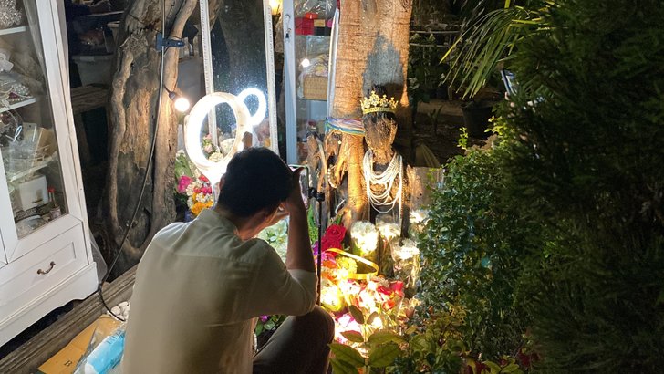 ซึ่งประชาชนที่มาไหว้ขอพรและแก้บน จะมีการถวายสร้อยมุกขาว เครื่องประดับสีขาว รวมไปถึงกระเป๋าแบรนด์เนม น้ำปั่นผักผลไม้ ขนมเค้ก ถือเป็นมิติใหม่แห่งสายมูเตลู และบริเวณรอบๆ ยัง มีพ่อค้าแม่ค้าขายลอตเตอรี่มายืนรอขายให้กับนักเสี่ยงดวงกันด้วย