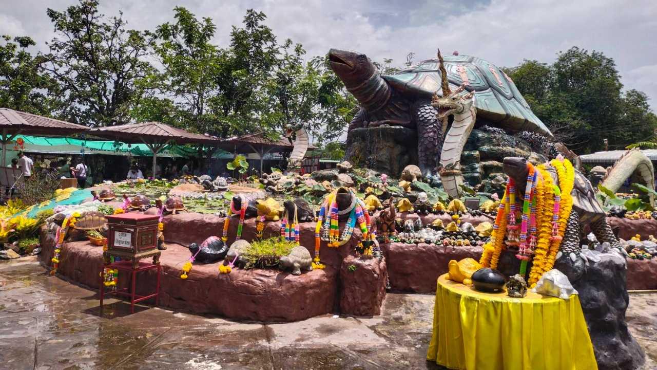 คนแห่ไหว้ขอพร "พญาเต่างอย" รื่นเริง ตอนวันหยุดยาวติดต่อกันหลายวันก่อนลอตเตอรี่ออก ตรวจสอบแผงสลากกินแบ่ง เจอ "เลขเด็ด" ถูกซื้อไปสะอาดแผงแล้ว มีอีกทั้งเลขงาม ติดศูนย์ รวมทั้งเลขมงคล