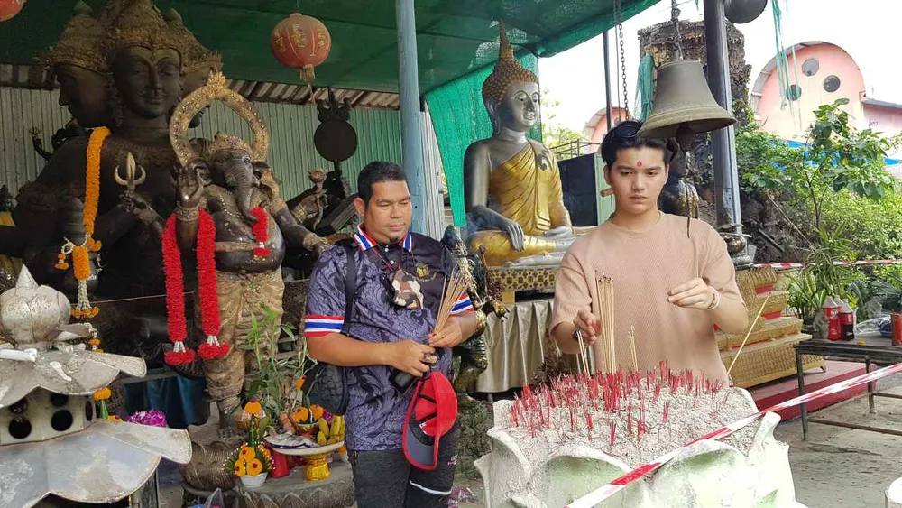 คอลอตเตอรี่ลุ้นเลขพลุนักร้องดัง "ซัน ไมค์ทอง" ขอพรพระวิฆเนศวร วัดสว่างอารมณ์ จังหวัดจังหวัดนครปฐม พร้อมส่อง "เลขเด็ด" ด้านหลังแบงค์มงคล หวังนำไปลุ้นโชคงวดนี้