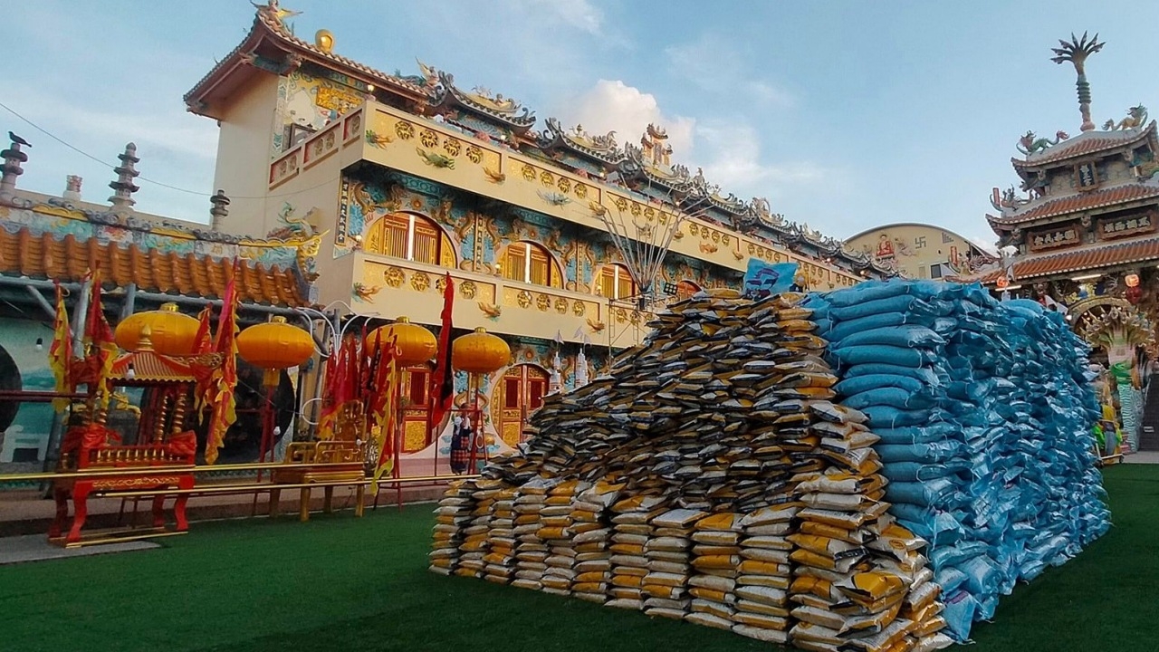 สำหรับบรรดาคนที่เคยมีโชคกับศาลที่นี้ ไม่ว่าจะเกิดเรื่องหน้าที่การงาน ธุรกิจร้านที่เจริญแล้ว และบรรดาคนที่มีโชคกับ กุมารไก่ทองคำ ได้นำสิ่งของมาแจกอีกด้วย โดยค่ำคืนของคืนท้ายที่สุดก็ยังมีการแจกข้าวสารขนาดถุงละ 5 กิโลกรัม ปริมาณ 3,000 ถุง ทั้งยังจัดให้มีขบวนมังกรของไทย (ตัวใหญ่) แล้วก็มาเลเซีย (ตัวเล็ก) มาแสดงให้ตื่นตาตื่นใจ ท่ามกลางความงามของดอกไม้ไฟปริมาณ 19 ลูก ที่มาจุดเอาฤกษ์เอาชัยเพื่อความเป็นมงคล