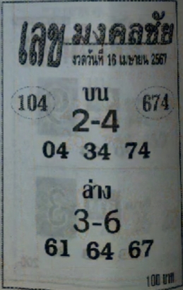 หวยเลขมงคลชัย 16/4/67 แจกเลขเด็ดซองดังฟรี