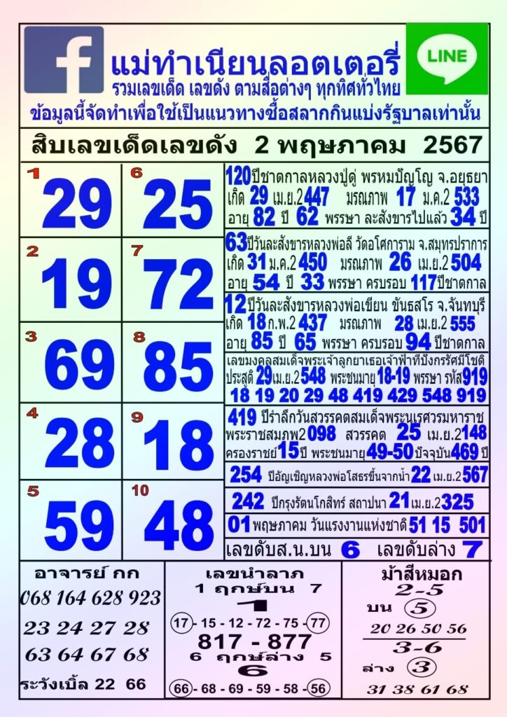 ชุดสิบเลขเด็ดเลขดัง หวยแม่ทำเนียน