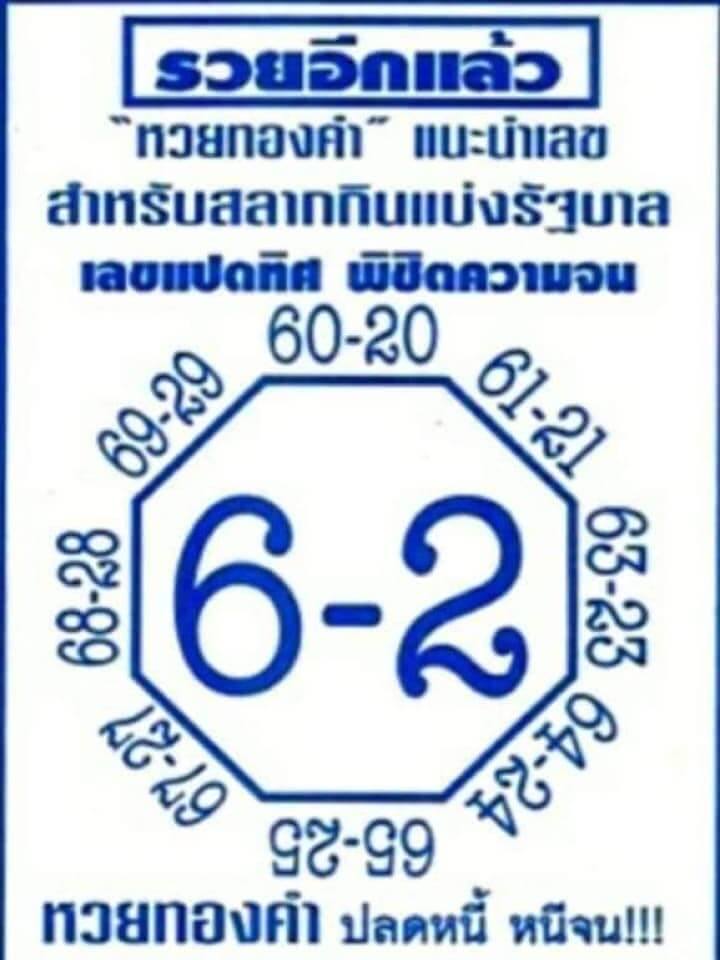 เลขเด่น 6 -2 จับเข้าคู่เลขท้าย 2 ตัว บน-ล่าง ได้แก่
