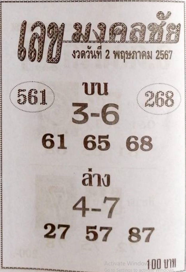 หวยเลขมงคลชัย 2/5/67 แจกเลขเด็ดซองดังฟรี