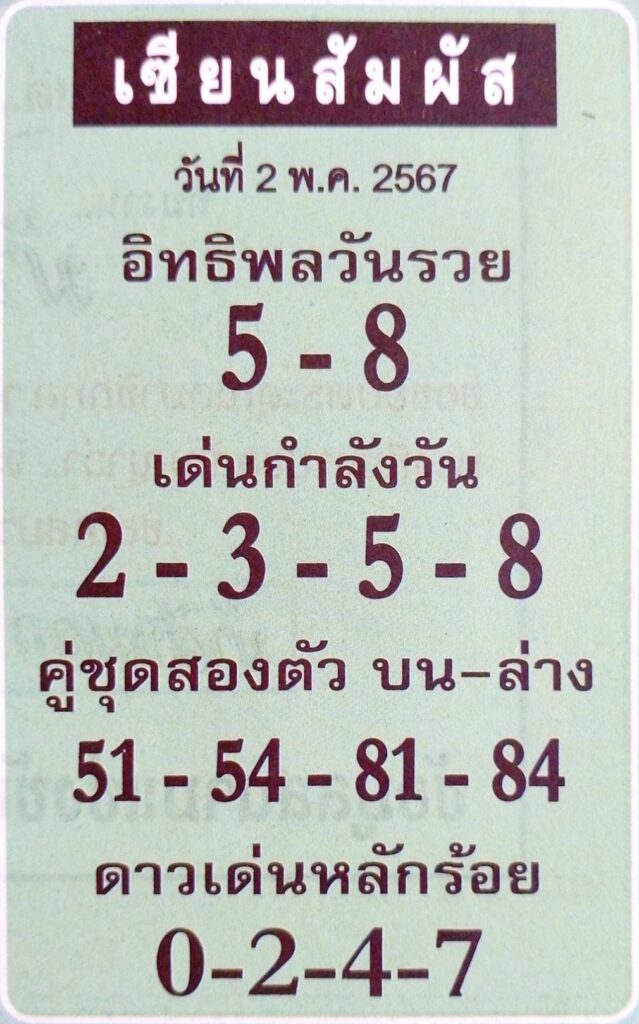 หวยเซียนสัมผัส 2/5/67 เจาะเบื้องลึกแนวทางหวยงวดนี้ สัมผัสเลขดังก่อนใคร