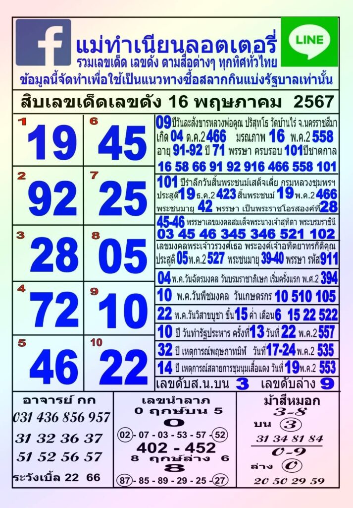 หวยแม่ทำเนียน ศูนย์รวมเลขเด็ดหวยดังมาแรง ดูหวยแม่ทำเนียน 16/5/67 แนวทางหวยรัฐบาลงวดล่าสุด ขอนำเสนอหวยแม่ทำเนียนงวดนี้ มาพร้อมกับรวมเลขเด็ด เลขดัง ตามสื่อต่างๆ ทั่วประเทศไทย คัดสรรเน้นๆ สิบเลขเด็ดเลขดัง