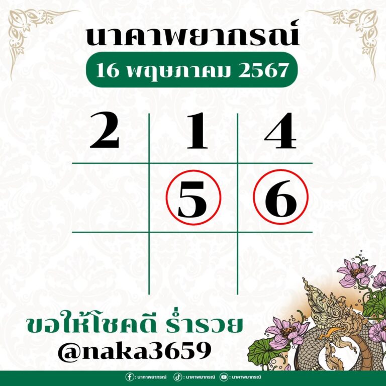 หวยนาคาพยากรณ์ 16/5/67 จับคู่เลขเด็ดนาคาพยากรณ์งวดนี้