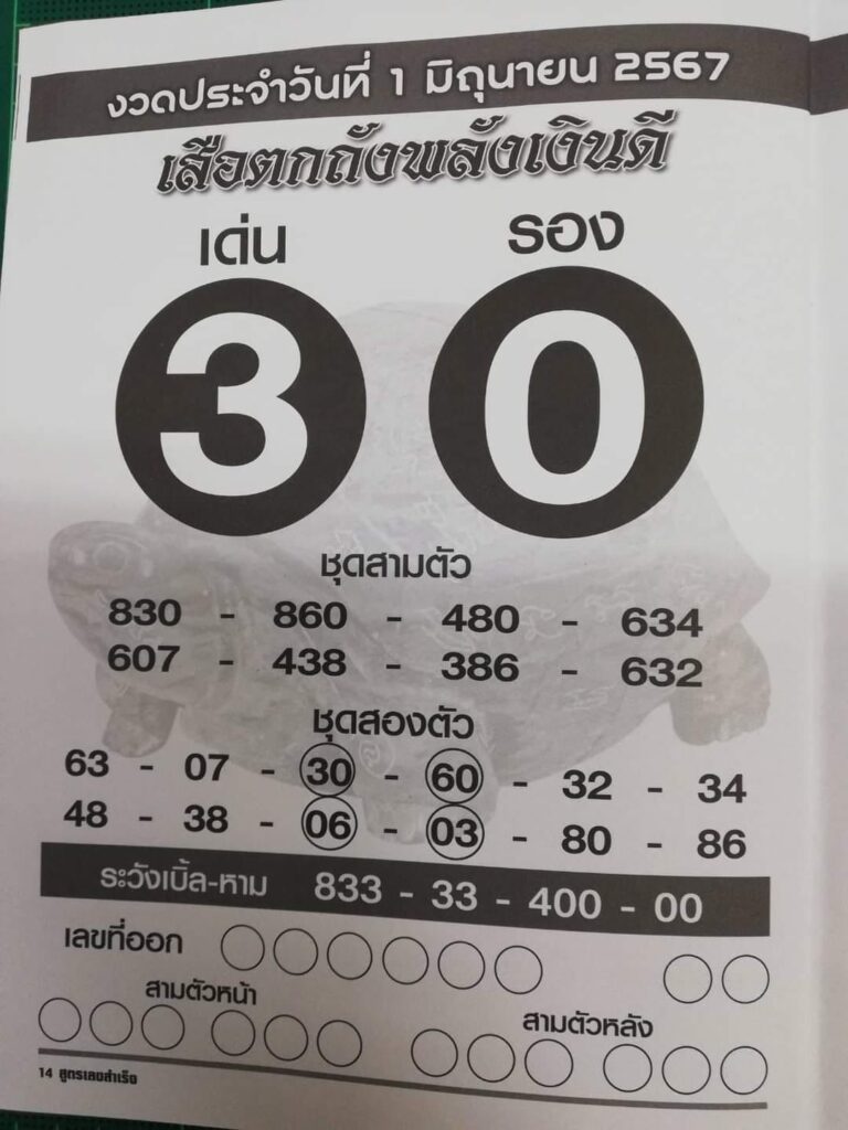 หวยเสือตกถังพลังเงินดี 1/6/67 แจกหวยซองแม่นๆ