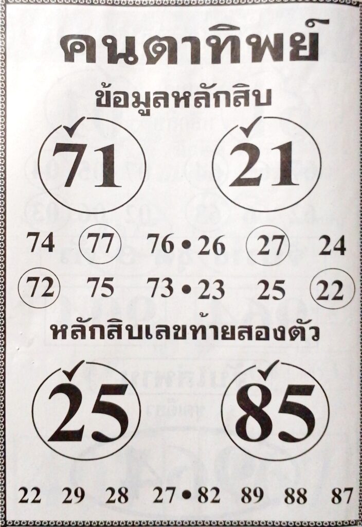 สำหรับหวยซองคนตาทิพย์จัดมาให้คนรักหวยทุกท่านได้ชมกันอีกเช่นเคย เจาะลึกเลขเด็ดงวดล่าสุดอัพเดทเลขเด็ดผลงานดี ให้คอหวยได้เลือกพิจารณาหวยงวดนี้