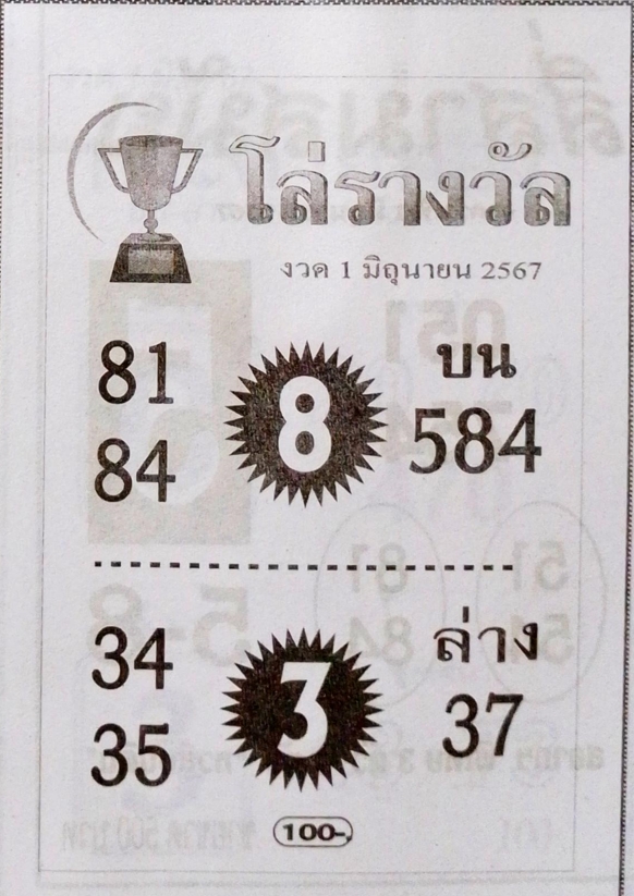 เลขเด่นล่าง 3 จับคู่เลขท้าย 2 ตัว ได้แก่