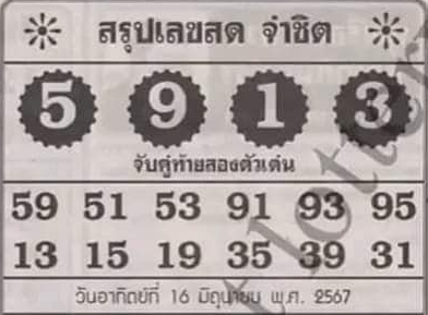 เลขเด่น 5 -9 -1 -3 จับคู่เลขท้าย 2 ตัวปังๆ จ่าชิต ได้แก่