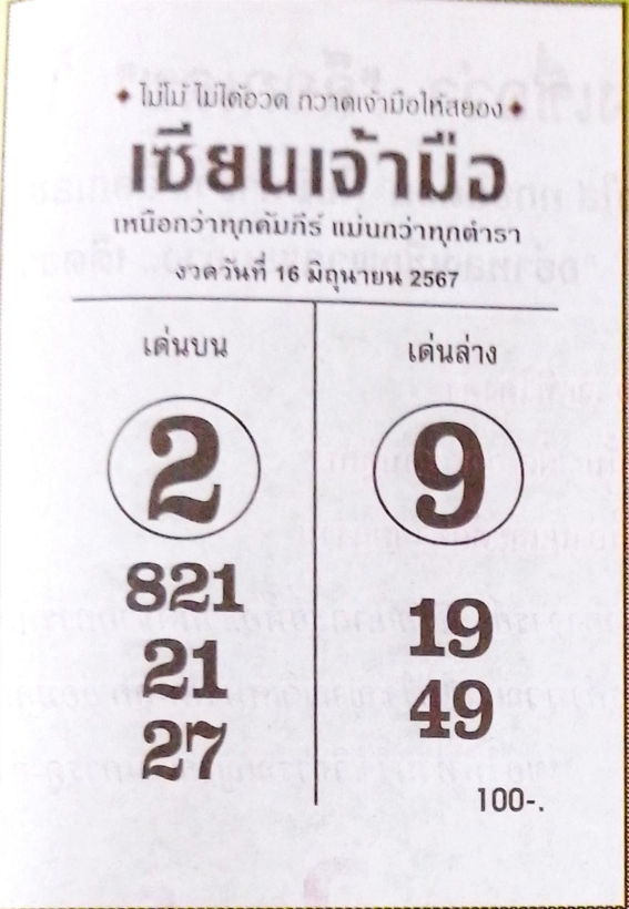 เลขเด่นล่าง 9 จับคู่เลขท้าย 2 ตัวได้แก่