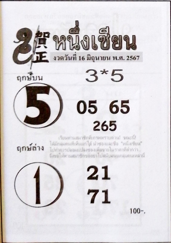 ฤกษ์ล่าง 1 จับคู่เลขท้าย 2 ตัว ได้ดังนี้