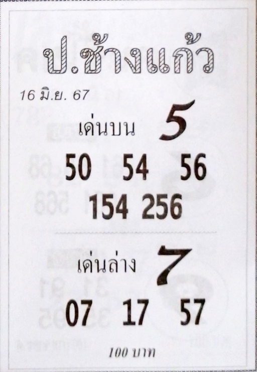 เลขเด่นล่าง 7 จับคู่เลขท้าย 2 ตัว ได้ดังนี้
