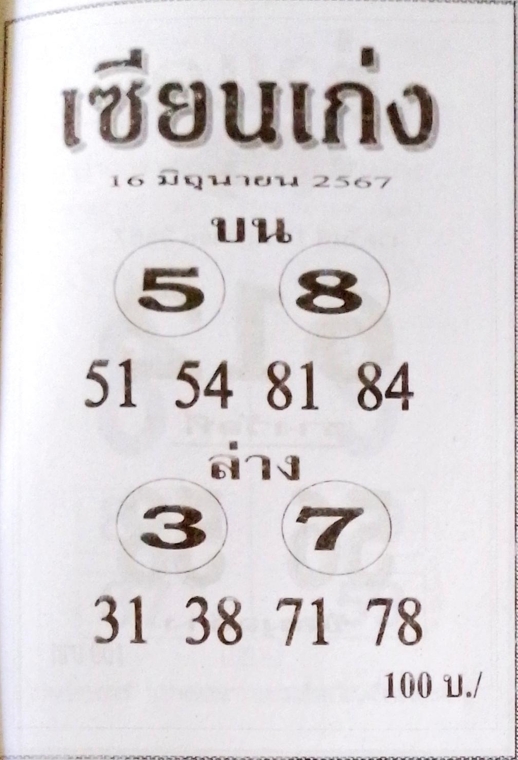 เลขเด่นล่าง 3 -7 จับคู่เลขท้าย 2 ตัว ได้แก่