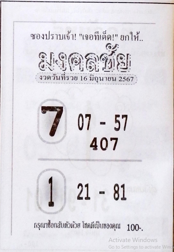 เลขเด่น 7 จับคู่เลขท้าย 3 ตัว และ 2 ตัว ได้ดังนี้