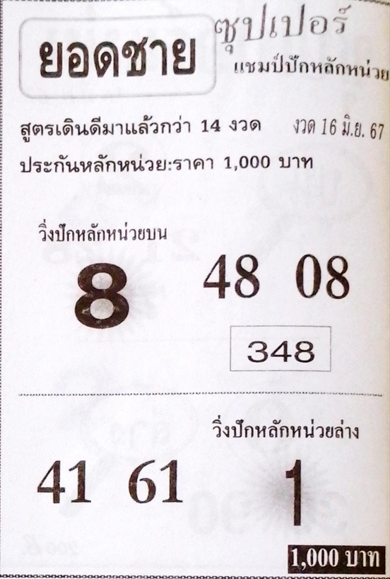 เลขวิ่งล่าง 1 จับคู่เลขท้าย 2 ตัว ได้ดังนี้