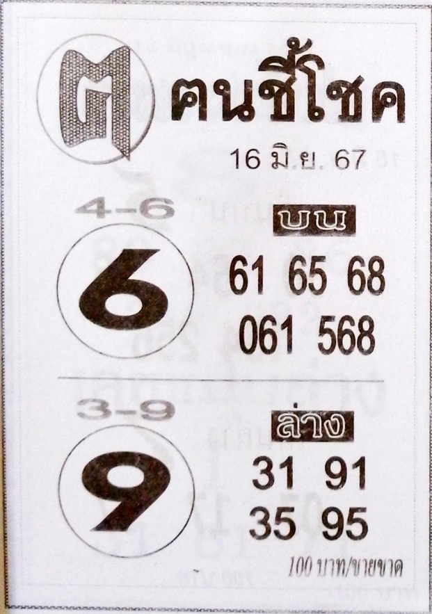 เลขเด่นล่าง 9 -3 จับคู่เลขท้าย 2 ตัว ได้แก่