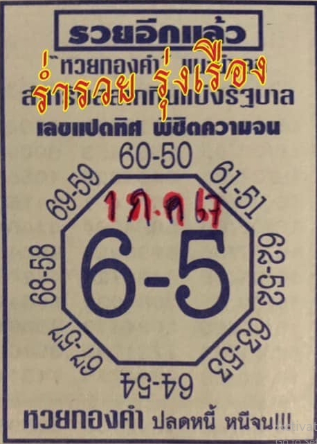 เลขเด่น 6 -5 จับคู่เลขท้าย 2 ตัว ได้ดังนี้