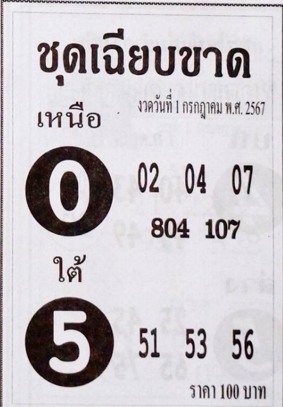 เลขเด่นล่าง 5 จับคู่เลขท้าย 2 ตัว ได้ดังนี้