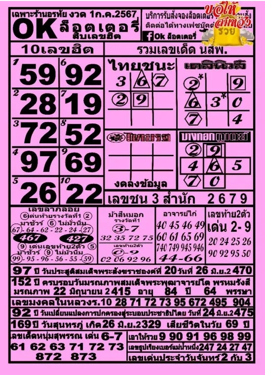 เลขท้าย 2 ตัว รวม 10 เลขขายดี ได้ดังนี้