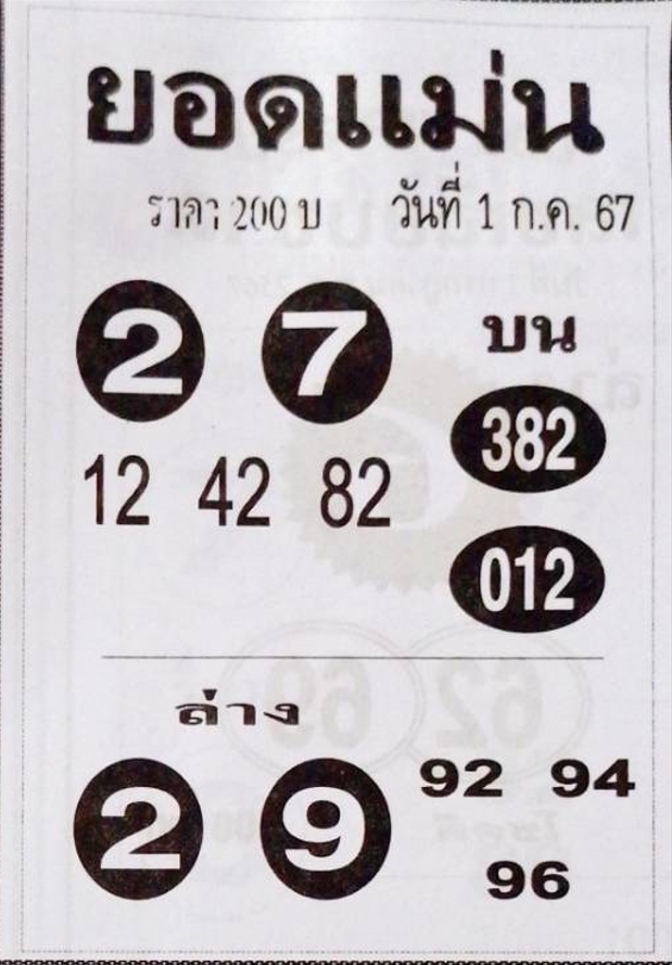 เลขเด่นบน 2 -7 จับคู่เลขท้าย 3 ตัว และ 2 ตัว ได้ดังนี้