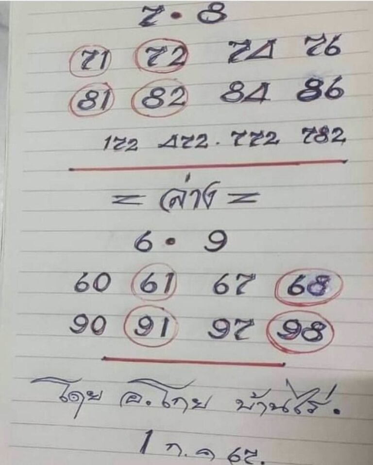 เลขเด่นล่าง 6 -9 จับคู่เลขท้าย 2 ตัว ได้ดังนี้