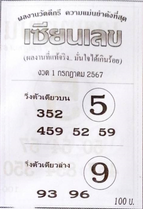 เลขเด่นบน 9 จับคู่เลขท้าย 2 ตัว ได้ดังนี้
