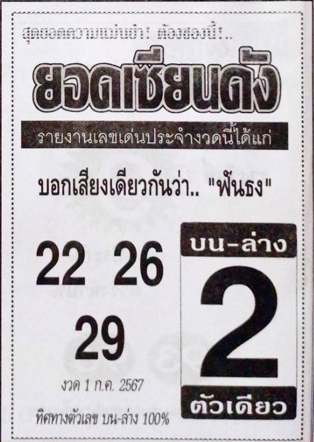 เลขเด่น 2 จับคู่เลขท้าย 2 ตัว ได้ดังนี้