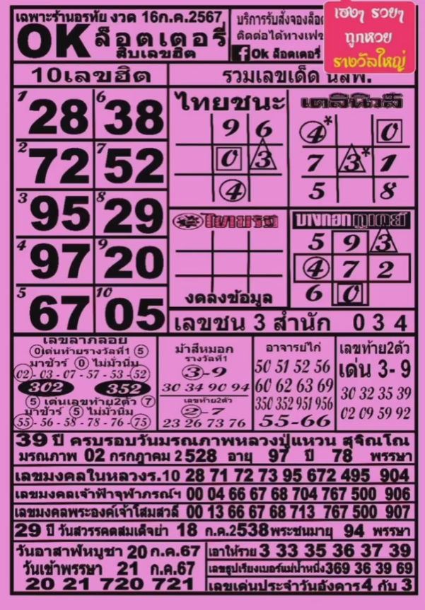 เลขท้าย 2 ตัว รวม 10 เลขขายดี ได้ดังนี้