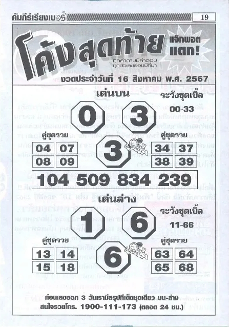 หวยโค้งสุดท้าย 16/8/67 แจกหวยเด็ดซองดัง ดูเลขเด็ดโค้งสุดท้ายวันนี้ แนวทางหวยรัฐบาลเข้าทุกงวด วิเคราะห์หวยซองโค้งสุดท้าย ชุดเลข 3 ตัว และ 2 ตัว ชุดเลขเด่นผลงานดี จากสำนักหวยโค้งสุดท้ายงวดนี้