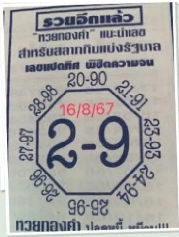 เลขเด่น 2 -9 จับคู่เลขท้าย 2 ตัว ได้ดังนี้