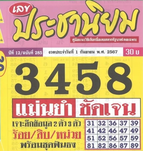 หวยประชานิยม 1/9/67 ขอนำเสนอคู่มือแนะนำวิธีเลือกซื้อเลขสลากกินแบ่งรัฐ จากนิตยสารหวยประชานิยม เจาะลึกข้อมูลเลขเด็ดประชานิยม 3 ตัว และ 2 ตัว ร้อย สิบ หน่วย พร้อมชุดเลขฟันธง วิเคราะห์หวยเด็ดประชานิยมงวดนี้