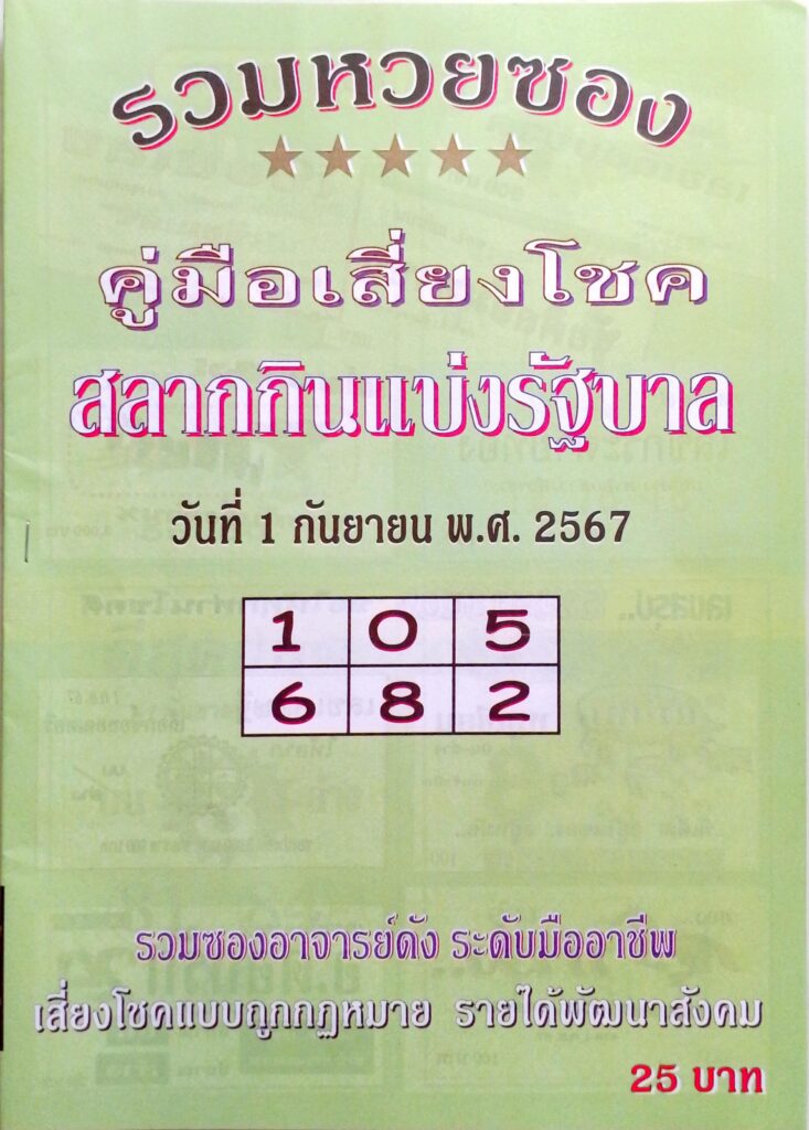 หวยปกเขียว 1/9/67 อัพเดทหนังสือ นิตยสารรวมหวยซองปกเขียว คู่มือเสี่ยงโชคสลากกินแบ่งรัฐบาล งวดนี้ ดูเลขเด็ดหวยซองปกเขียวงวดนี้ มาพร้อมชุดตารางเลขเด่น 6 ตัว จับคู่เลข 3 ตัว และ 2 ตัว บน-ล่าง วิเคราะห์เลขเด็ดปกเขียว