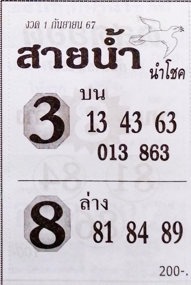 หวยสายน้ำ นำโชค แนวทางชี้ทางเศรษฐี หวยสายน้ำ นำโชค 1/9/67 หลักการวิเคราะห์หวยรัฐบาลไทย แนวทางที่ทางเราได้รวบรวมหวยเด็ด หวยดังจากทุกสำนักหวยที่ได้เปิดเผยตัวเลขให้เหล่าเซียนหวยได้เสี่ยงดวง