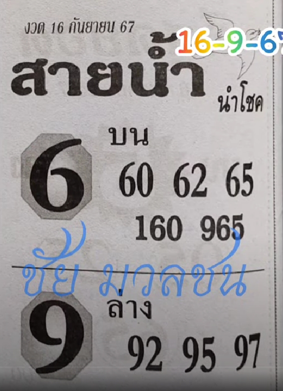 เลขเด่นล่าง 9 จับคู่เลขท้าย 2 ตัว ได้ดังนี้