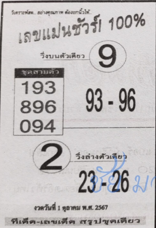 เลขแม่นชัวร์ 1/10/67 หวยแม่นๆ เลขเด็ดที่เรียกว่าเข้ามากที่สุดชุดหนึ่งเลยกว่าได้ ให้หวยแม่นๆ ที่นี่ เลือกมาแล้วว่าคอหวยต้องถูกใจ ด้วยความนิยมต่อเนื่อง มากว่าหลายงวดแล้วด้วยกัน เช็คหวยวันนี้