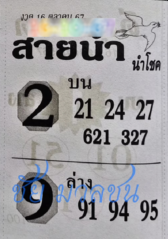 เลขเด่นล่าง 9 จับคู่เลขท้าย 2 ตัว ได้ดังนี้