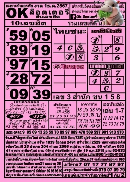 หวยOKลอตเตอรี่งวดนี้ รวมเลขเด็ดหวยซองดังแม่นๆ แจกฟรีสิบเลขขายดี หวยOKลอตเตอรี่ 1/12/67 ขอนำเสนอสิบเลขยอดฮิตขายดีมาแรง จากสำนักหวยดังOKลอตเตอรี่ทั่วประเทศ เพื่อให้คอหวยทุกท่านได้เลือกพิจารณา