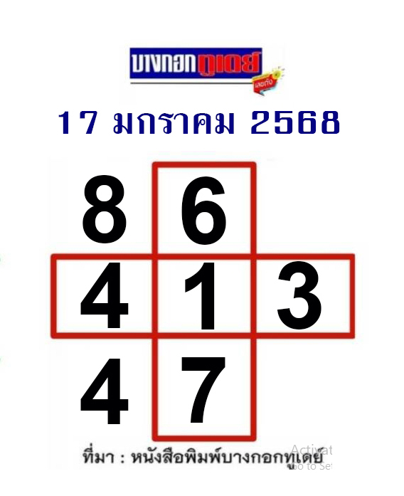 หวยบางกอกทูเดย์ 17/1/68 แจกชุดเลขเด็ดตารางดัง หวยบางกอกทูเดย์งวดนี้ จากหวยหนังสือพิมพ์ ที่คอหวยติดตามกันจำนวนมาก มาพร้อมชุดเลข 3 ตัว และ 2 ตัว ดูเลขเด็ดบางกอกทูเดย์ ตัวช่วยพิจารณาหวยรัฐบาลแม่นๆ ติดตามหวยบางกอกทูเดย์ล่าสุด