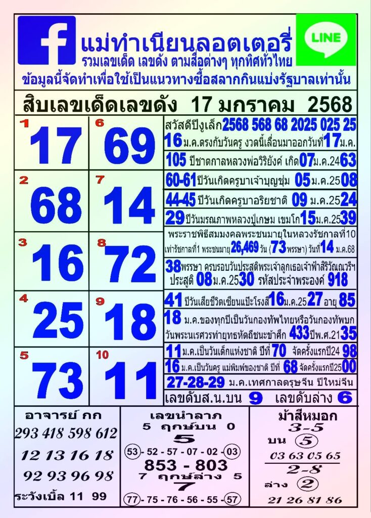 ชุดสิบเลขเด็ดเลขดัง หวยแม่ทำเนียน