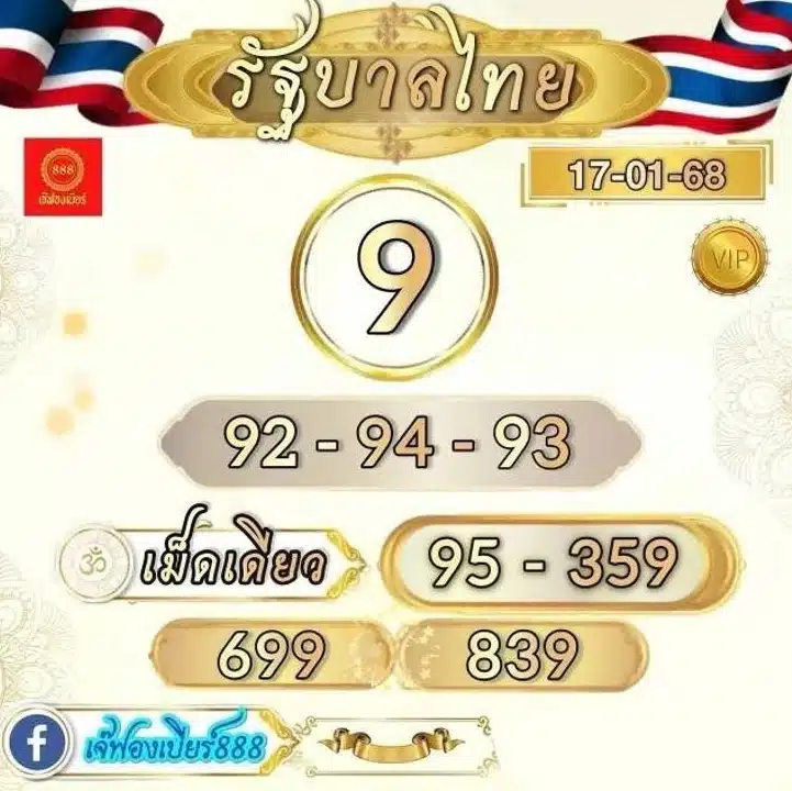 เลขเด่น : 9 เลขเด็ด เม็ดเดียว : 95 – 359 เลขท้าย 2 ตัว : 92 – 94 – 93 เลขท้าย 3 ตัว : 699 – 839