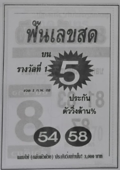 เลขเด่นบน 5 จับคู่เลขท้าย 2 ตัว ได้ดังนี้