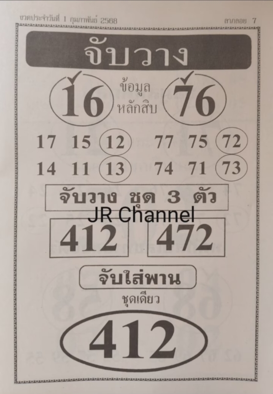 เลขเด่น 1 -7 จับคู่เลขท้าย 3 ตัว และ 2 ตัว ได้ดังนี้
