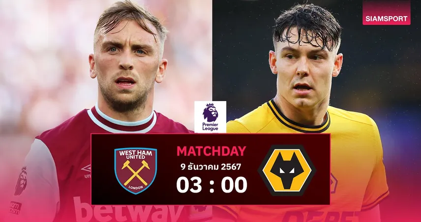 คืนนี้มีพรีเมียร์ลีก มันเดย์ไนต์ คู่ไม่ใหญ่ เวสต์แฮม เปิดบ้านพบ วูล์ฟส์ พ่วงด้วยเดิมพันอนาคตกุนซือทั้ง 2 ทีม ฝั่งไหนเพลี่ยงพล้ำอาจสั่งปลดโค้ชได้เลย!