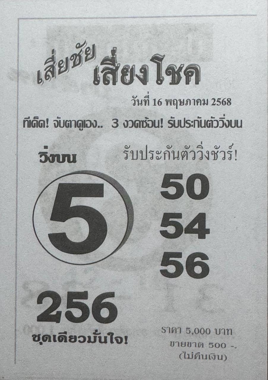 หวยเสี่ยชัยเสี่ยงโชค ที่เด็ด 3 งวดซ้อน เป็นที่รู้จักกันในนาม เสี่ยชัยเสี่ยงโชค หวยที่ออกติดกันถึง 3 งวดซ้อน เป็นหวยซองที่คอหวยและเซียนหวยหลายท่านได้ติดตามกับการวิเคราะห์หวยของเสี่ยชัยเสี่ยงโชค ที่ต้องจับตาดูกันเลยที่เดียวว่างวดนี้จะออกอะไรบ้าง วิเคราะห์คำนวณมาให้คอหวยได้เลือกคัดสรรแล้วที่นี้ รับประกันตัววิ่งบน แน่นอน