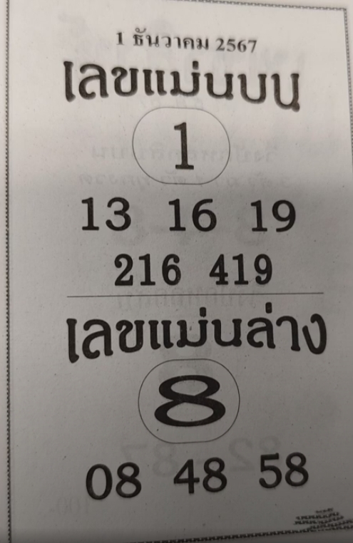 เลขแม่นบนแม่นล่าง 1/12/67 แจกเลขเด็ดหวยดังเข้าทุกงวด  VIEW : 80