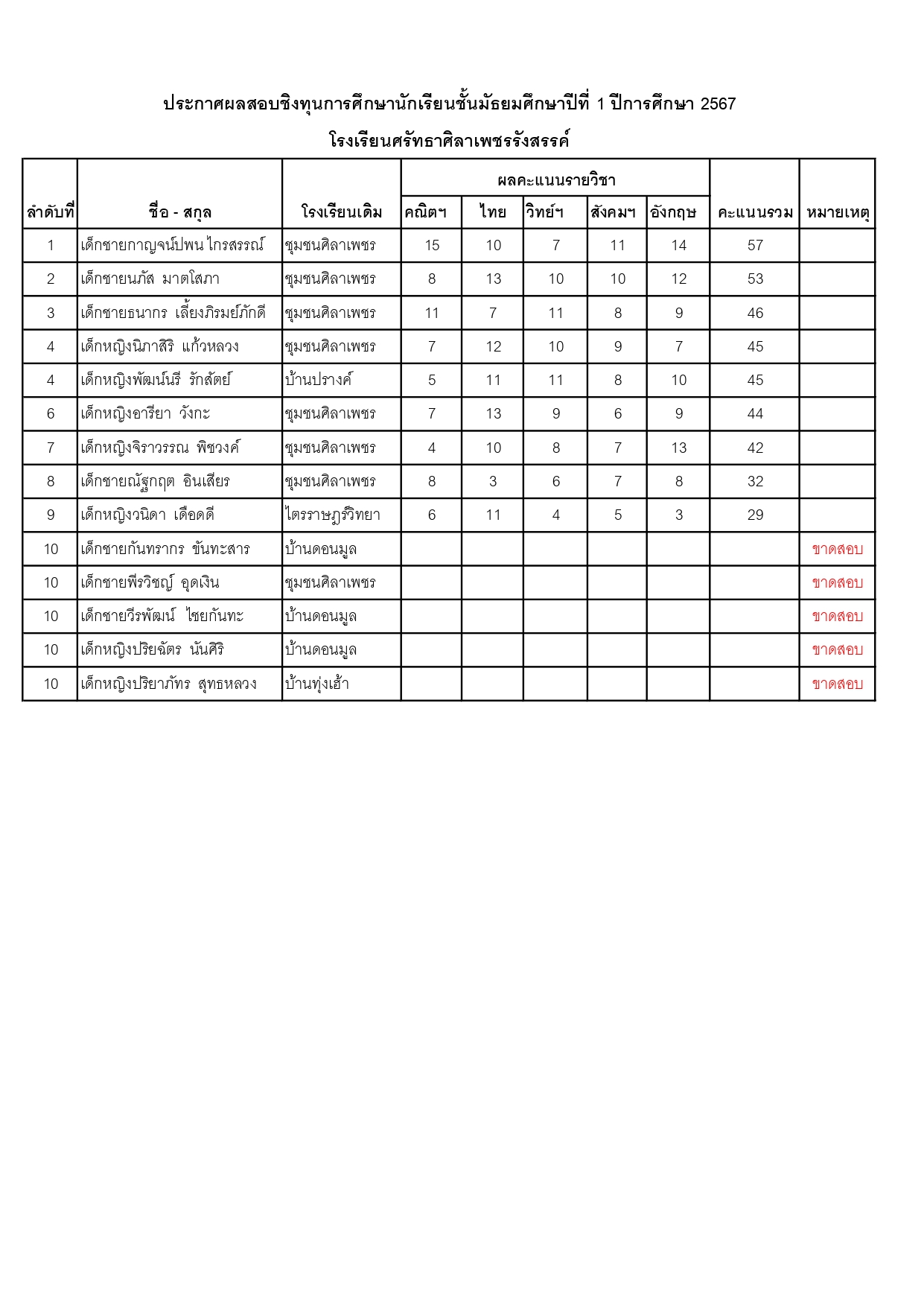++ประกาศผลสอบชิงทุนการศึกษา นักเรียนชั้นมัธยมศึกษาปีที่ 1 ปีการศึกษา 2567++ รายละเอียดตามแฟ้มประกอบบทความ